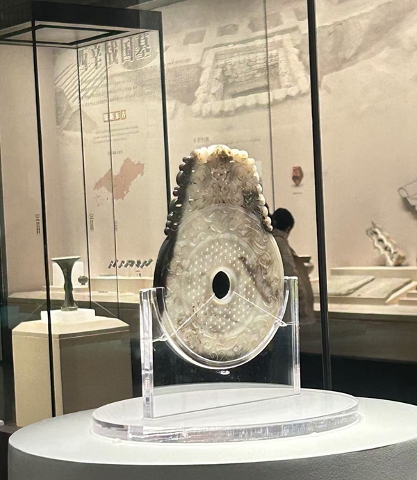 Jade bi (disc) with Inscription of "Yi Zi Sun", a signature piece at the Qingzhou Museum. The jade dates back to the Eastern Han Dynasty (25-220). [Photo/chinadaily.com.cn]