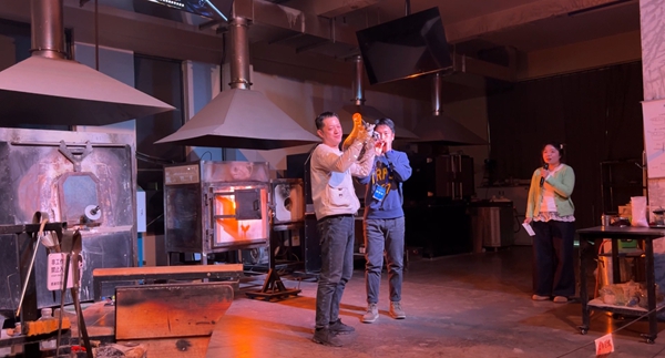 A visitor tries colored glass-making technique at Yanshen ancient town in Boshan district, Zibo. [Photo/chinadaily.com.cn]