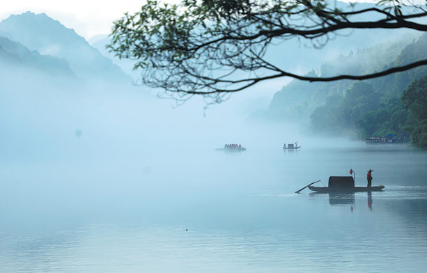 On the mist-shrouded waters of Dongjiang Lake in Central China's Hunan province, each sunrise unveils a scene of timeless beauty. A fisherman casts his net with practiced grace, its arc shimmering momentarily in the soft light before disappearing into the water. This captivating scene has become emblematic of the Dongjiang Lake scenic area.