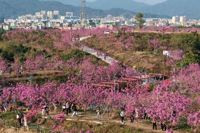 Countless purple trumpet trees have burst into bloom since the start of January in Xiamen, East China's Fujian province. [Photo provided to chinadaily.com.cn]