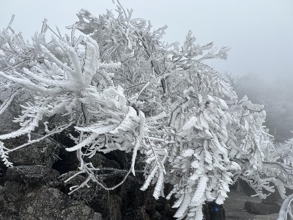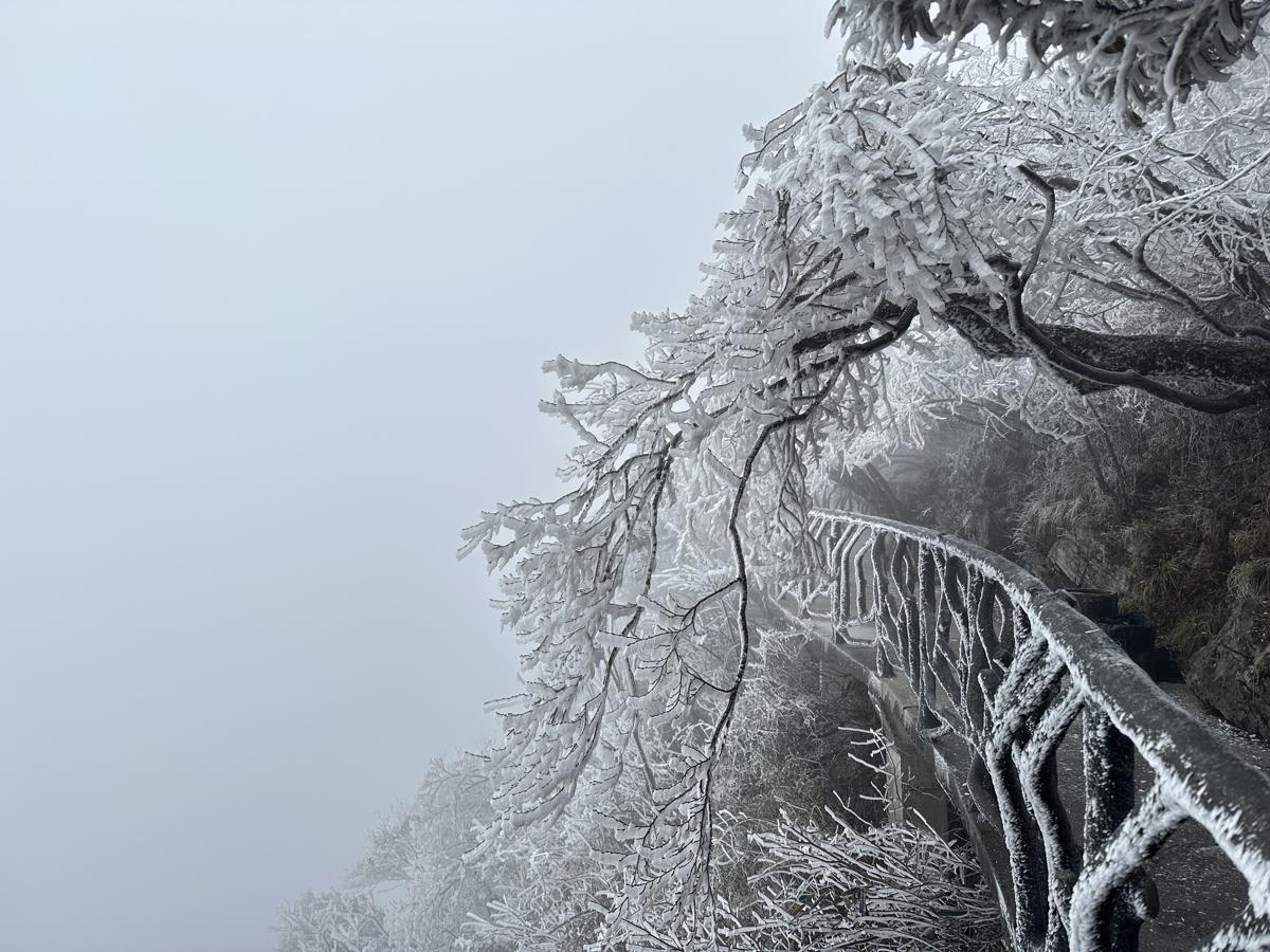 A powerful cold front sweeping through Central China dramatically transformed the landscape of Tianmen Mountain in Zhangjiajie, Hunan province, overnight, coating its peaks with frost and snow.