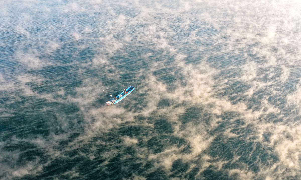 A light winter mist often settles over Lugu Lake in Lijiang, Yunnan province, as the highland lake and surrounding mountains slowly emerge at dawn.