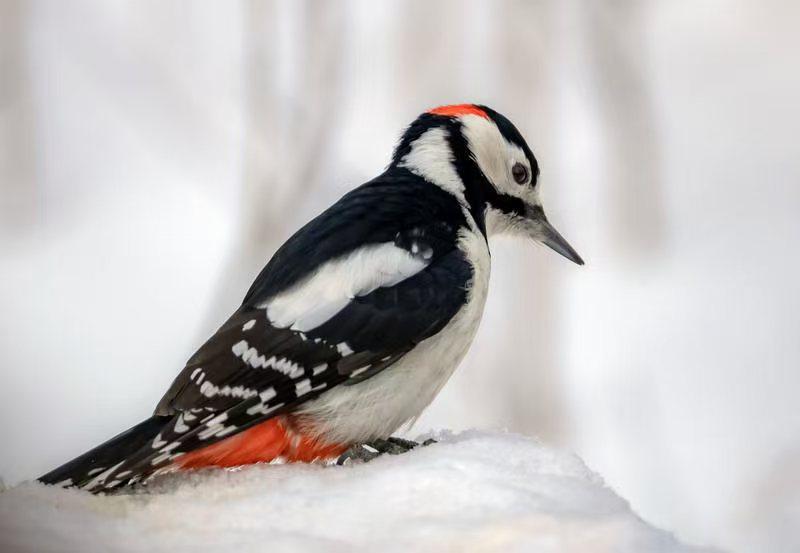 A woodpecker perches on a tree stump in Qianpailou village in Panshi city, Jilin province. [Photo by Jinlin Daily/For chinadaily.com.cn]