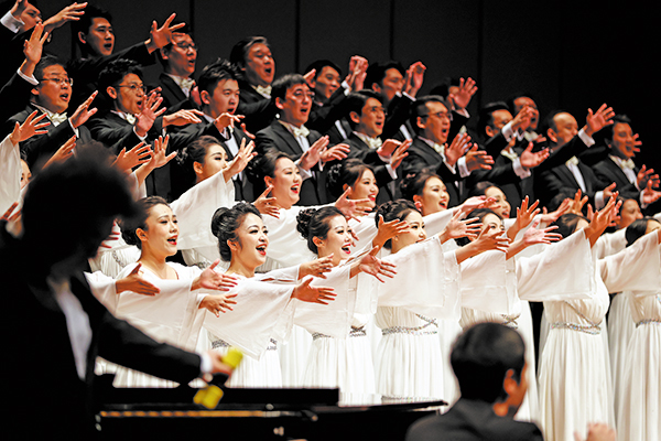 The China NCPA Chorus performs during its 16th-anniversary concert in Beijing on Dec 5. [Photo provided to China Daily]