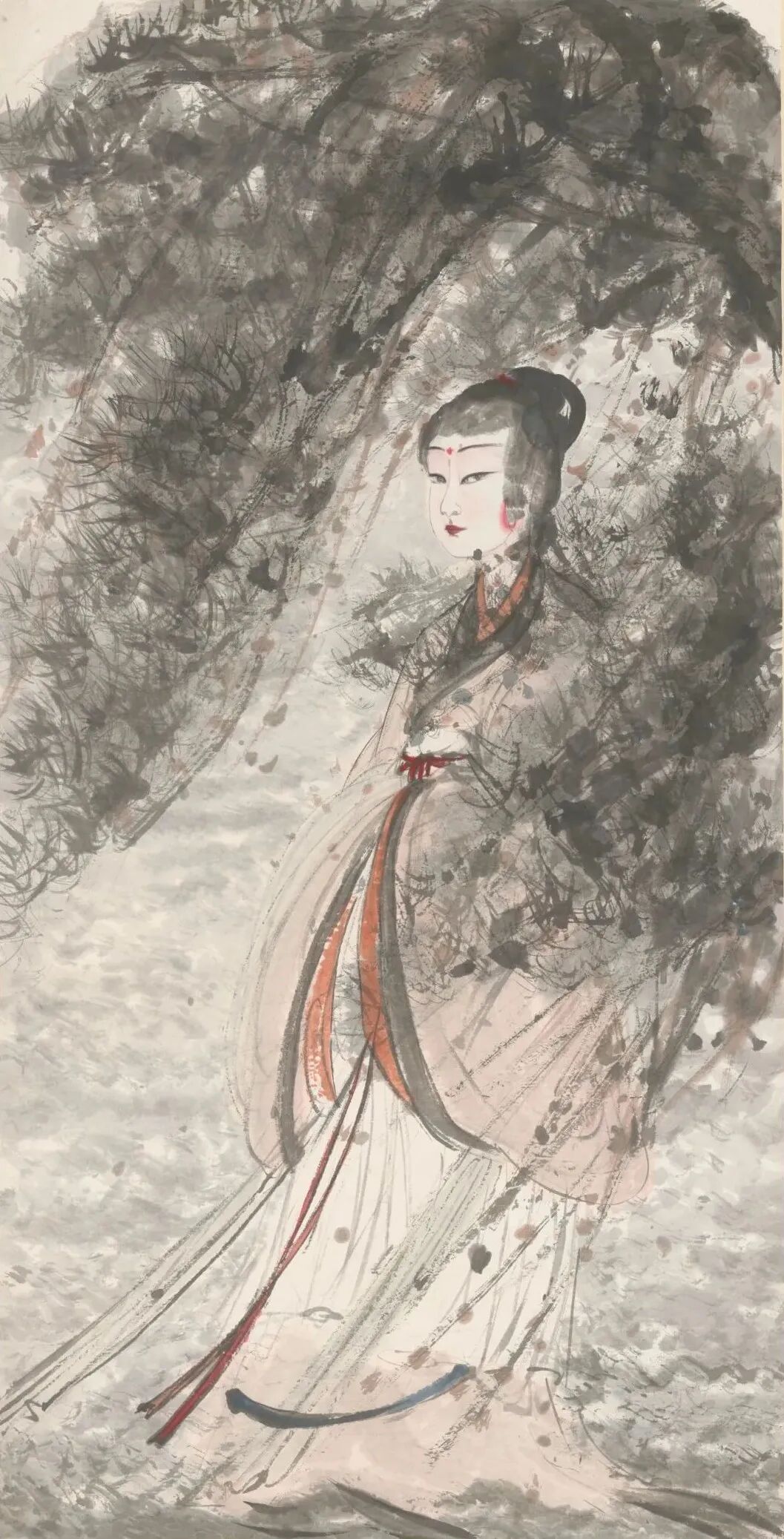 The Lady of the Xiang River Crossing a River, Fu Baoshi, 1965, ink and color on paper, from the collection of the Nanjing Museum [Photo/Hunan Provincial Museum official WeChat account]