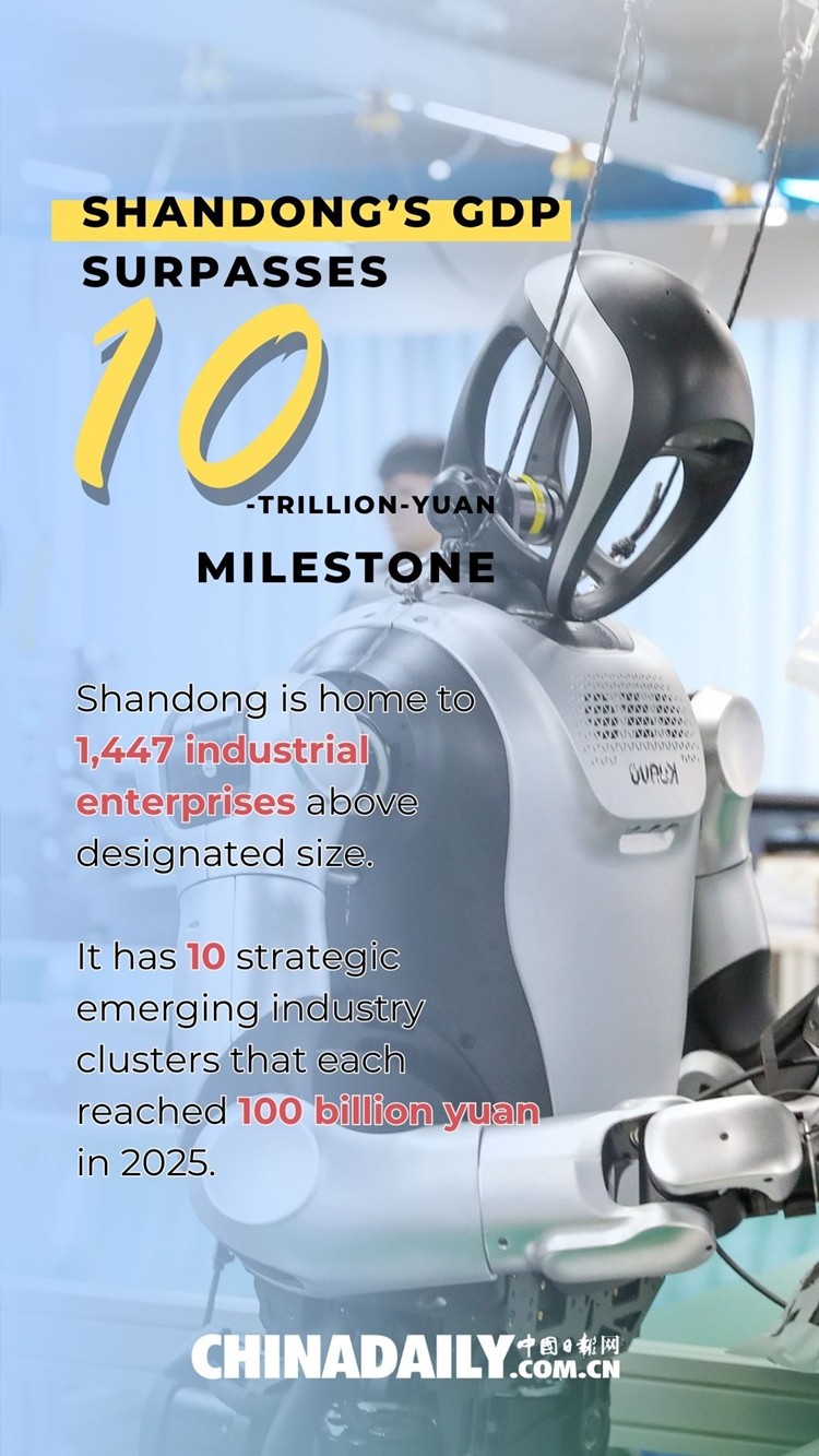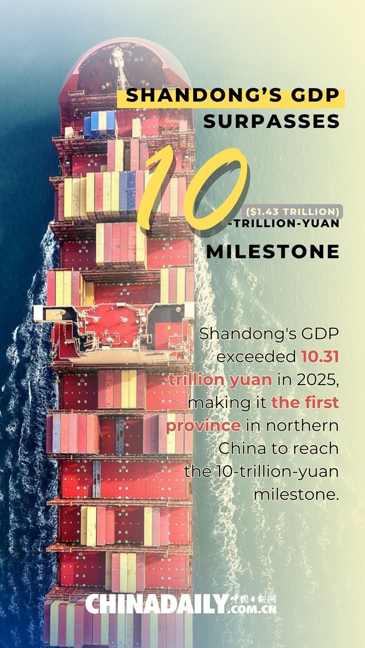 Shandong's GDP exceeded 10.31 trillion yuan ($1.48 trillion) in 2025, marking year-on-year growth of 5.5 percent. This makes it the third province in the country and the first in northern China to achieve this milestone.