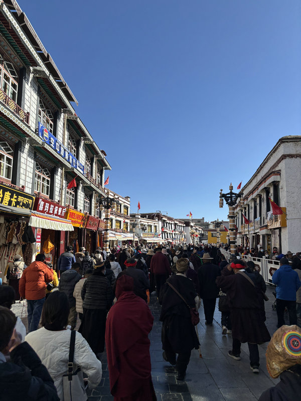 The ancient Barkhor Street in Lhasa, capital of the Xizang autonomous region, is a popular spot for tourists and pilgrims. [Photo by Palden Nyima/chinadaily.com.cn]