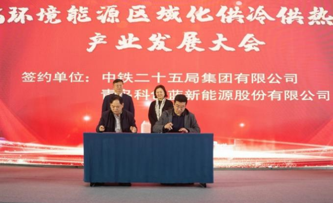 Qingdao KC Blue New Energy Co Ltd signs a strategic cooperation agreement with China Railway 25th Bureau Group Co Ltd on Jan 26. [Photo provided to chinadaily.com.cn]