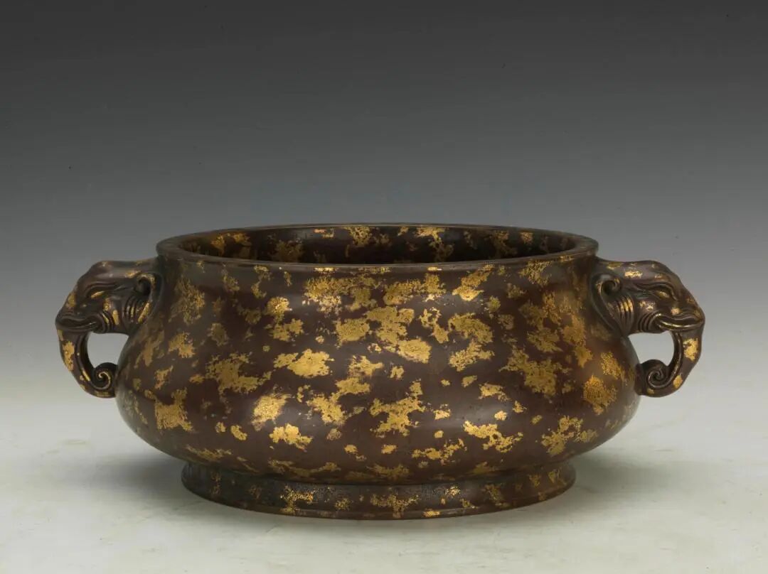 Bronze incense burner decorated with scattering of gilded motifs, imitating the style produced in the Ming Dynasty Xuande reign (1426-35), Qing Dynasty (1644-1911), from the collection of the Tianjin Museum [Photo/Tianjin Museum official WeChat account]