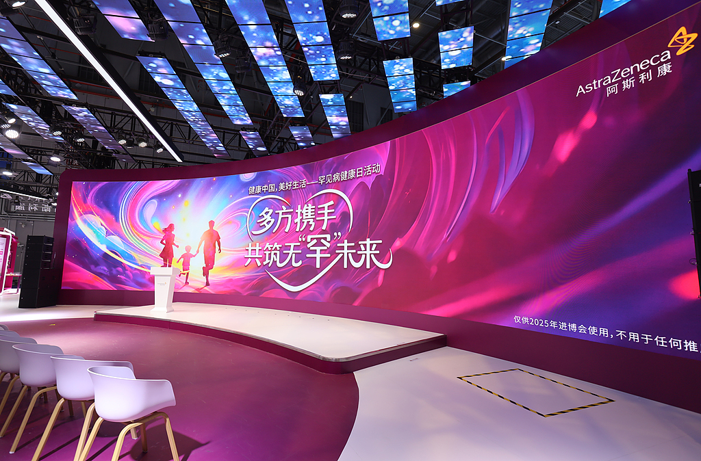 This photo taken on Nov 7, 2025 shows the booth of AstraZeneca at the Medical Equipment and Healthcare Products Exhibition Area of the eighth China International Import Expo (CIIE) in East China's Shanghai. [Photo/VCG]