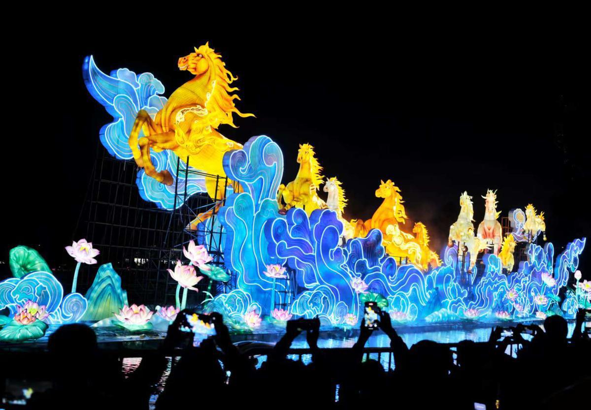 To celebrate what will, according to Chinese calendar, be the Year of Horse, the key large-scale lantern set of the show is "Galloping Horses".