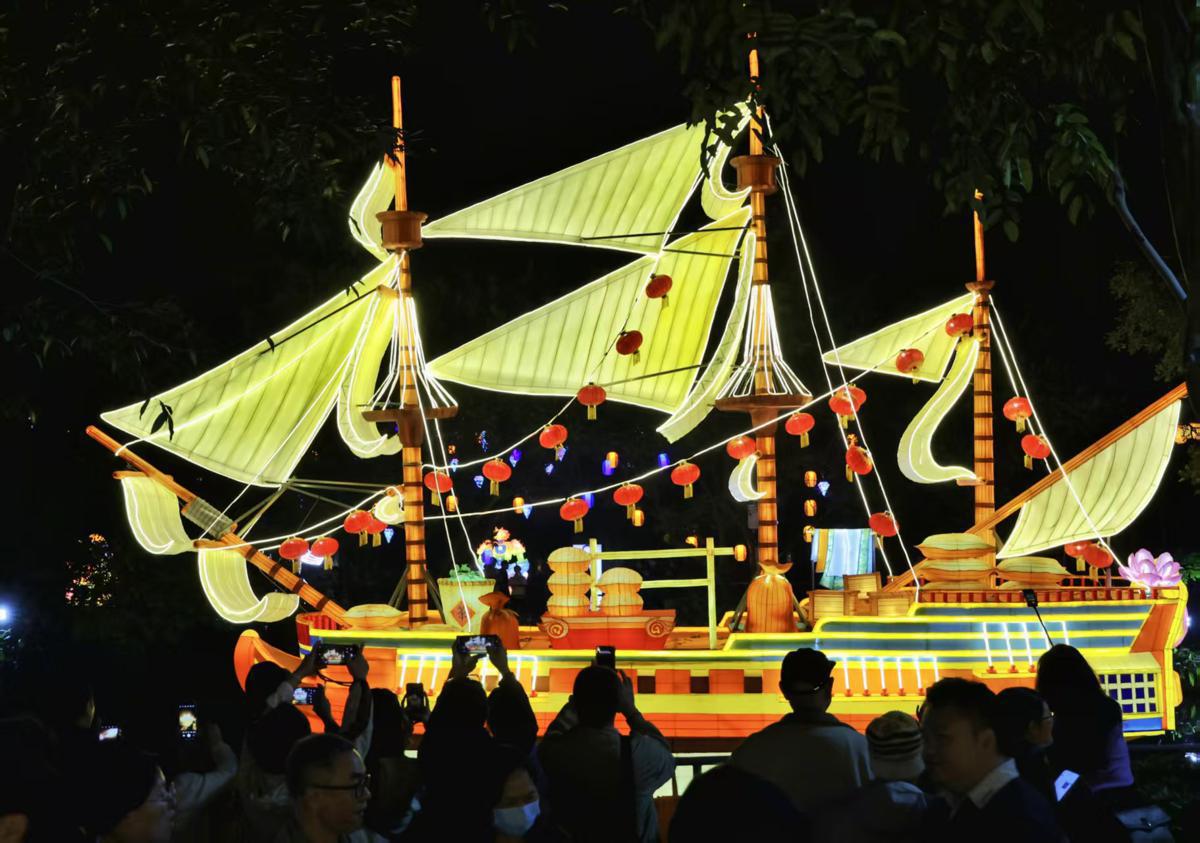 Themed "Cantonese Rhythm Millennia · One Heart Across the Four Seas", the lantern show, which is simultaneously taking place at Yuexiu Park and seven branch venues in the city, is expected to become a new tourist attraction, drawing many visitors from home and abroad during the Chinese New Year period beginning on Feb 17, according to a statement released by the city government on Friday.