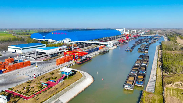 Jining Port becomes the first inland port in northern China to handle over 100 million metric tons of cargo. [Photo/WeChat account: gh_ccfd1293bad8]