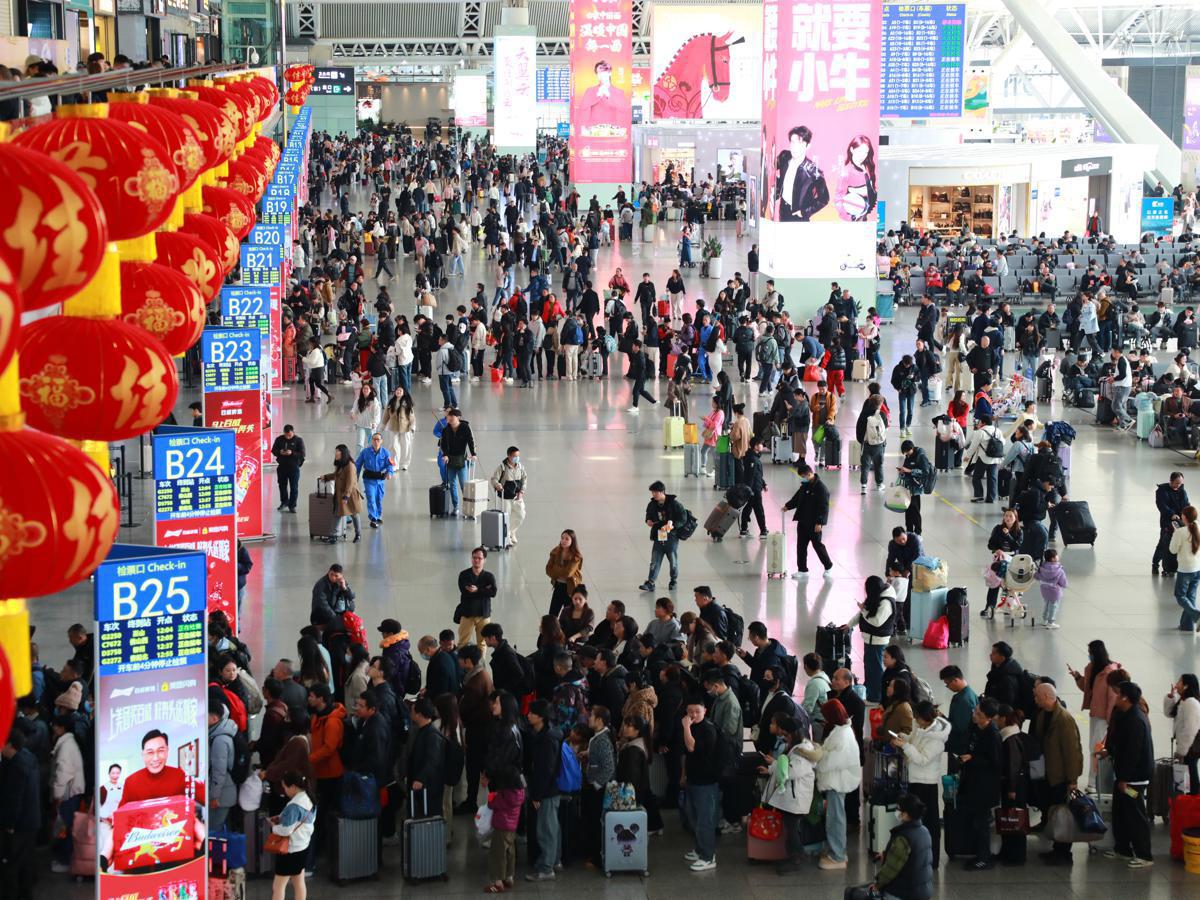 According to the railway group, the overall passenger flow before Spring Festival, which falls on Feb 17, will run smoothly. It mainly consists of staggered travel by students, migrant workers, people visiting family, and tourists.