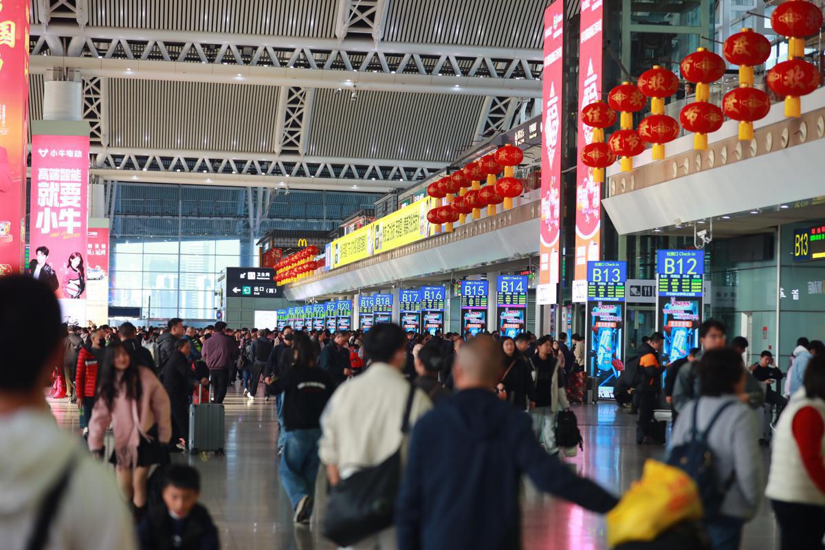 In the first three days of the annual travel rush, which began on Monday, nearly four million passengers departed from Guangdong, while about 2.84 million arrived in the province, according to China Railway Guangzhou Group.
