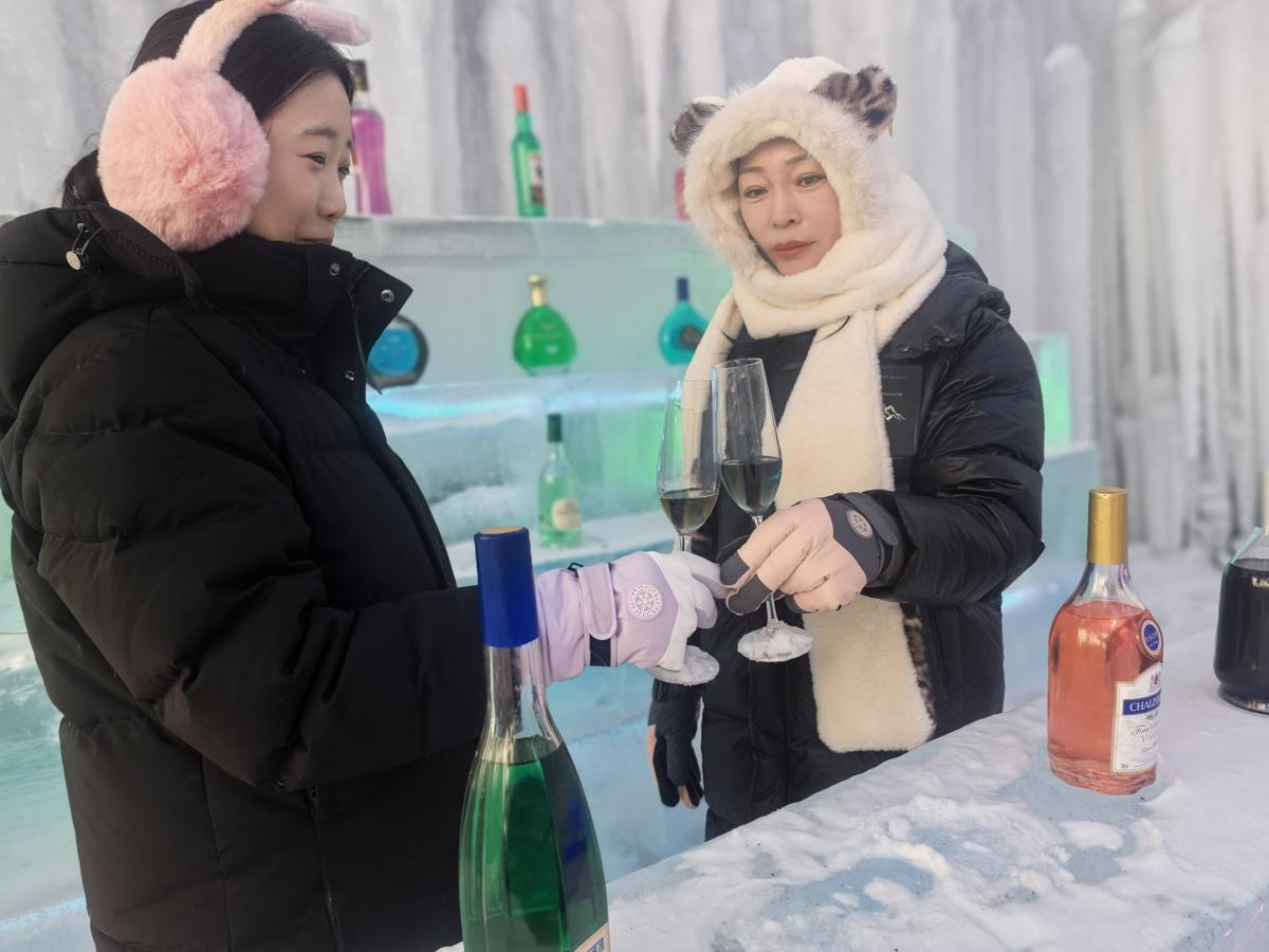 Tourists experience an all-ice indoor bar at an ice and snow park in Changchun, Jilin province. [Photo by Guo Bingshu/For chinadaily.com.cn]
