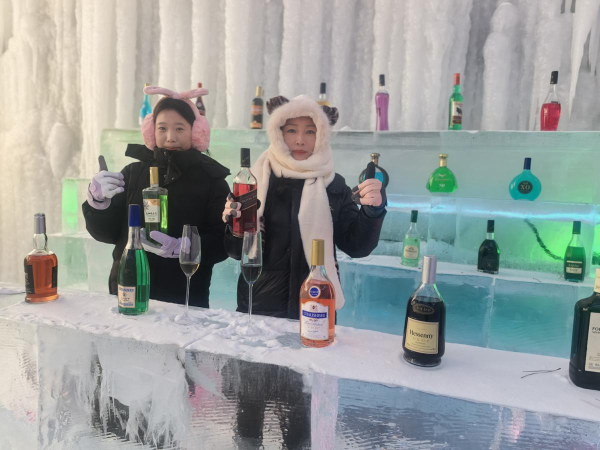 Tourists experience an all-ice indoor bar at an ice and snow park in Changchun, Jilin province. [Photo by Guo Bingshu/For chinadaily.com.cn]