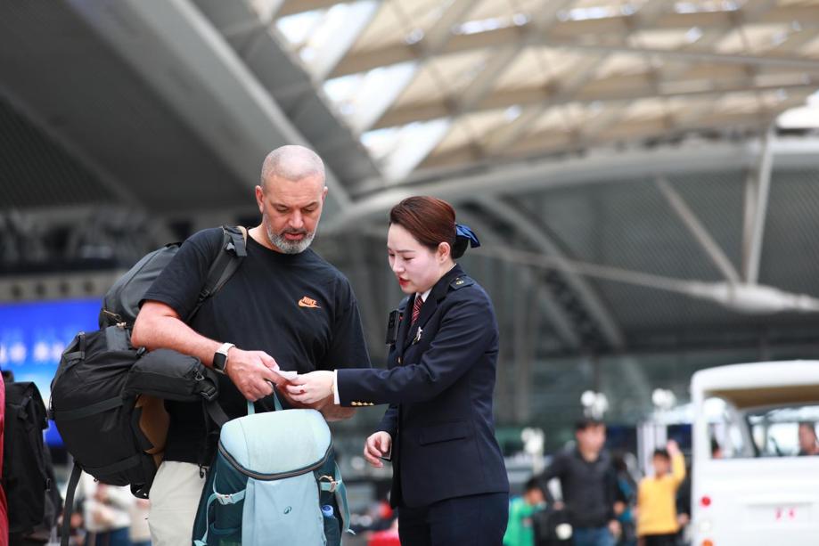 With Spring Festival travelers flooding Guangzhou South Railway Station, Chen Xuan can be found weaving through the waiting hall each day, offering directions, answering questions and easing journeys for overseas visitors.