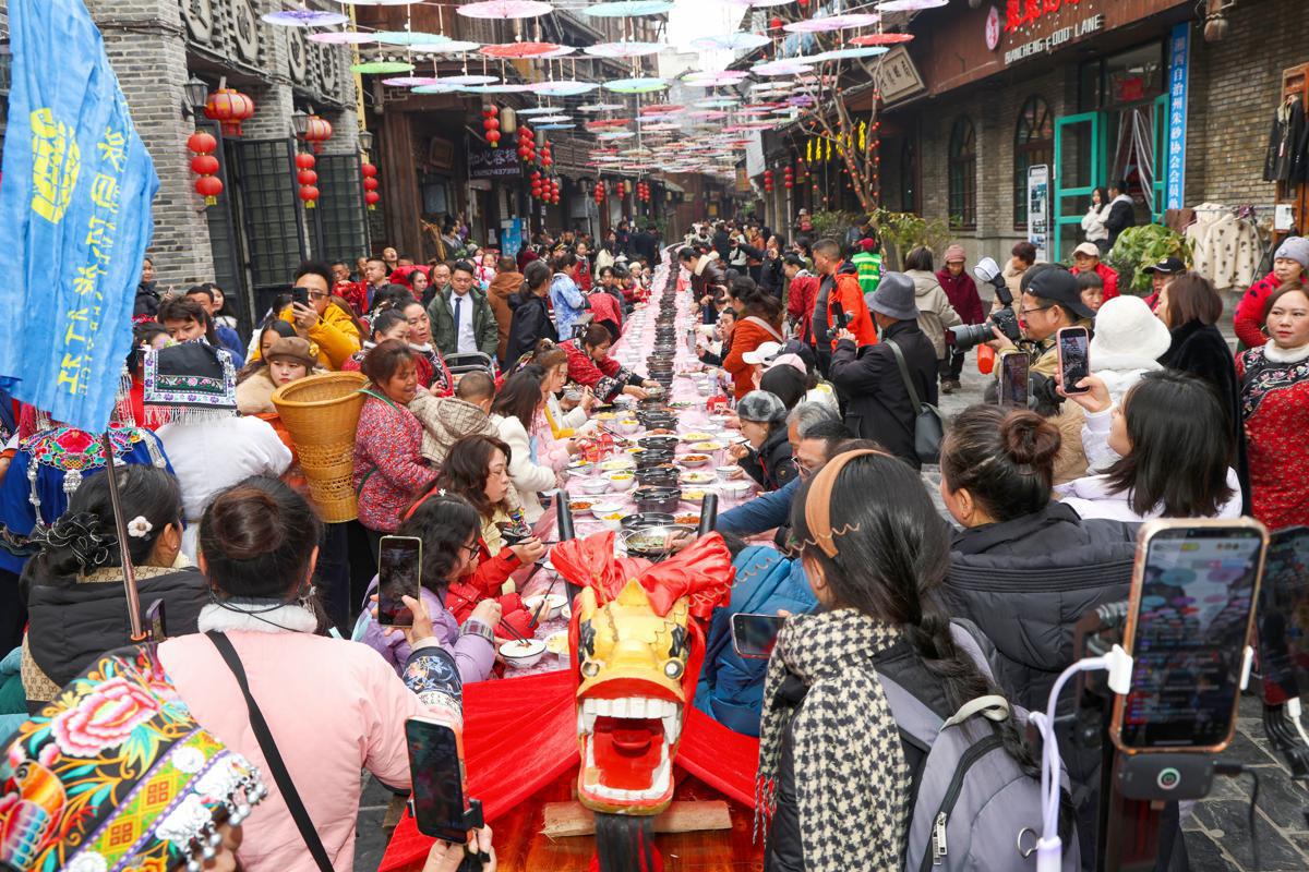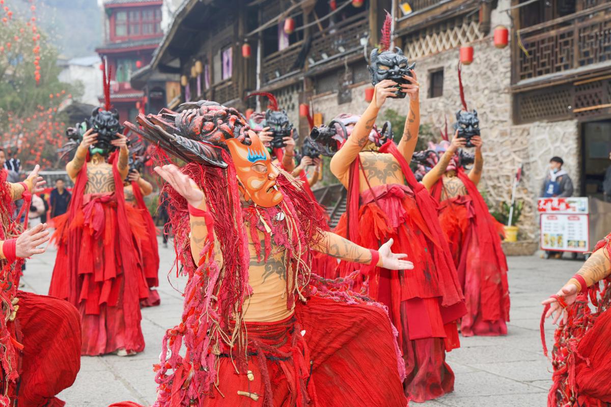 A five-day Spring Festival celebration featuring intangible cultural heritage items and activities from Chongqing and the provinces of Hunan and Guizhou concluded on Sunday in Huayuan county, Hunan, creating an energetic crossroads of culture and traditions.