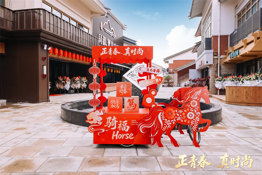 A horse-themed decoration is seen at the Taiwan Town in Pingtan county, Fujian province, Feb 10, 2026. [Photo provided to chinadaily.com.cn]