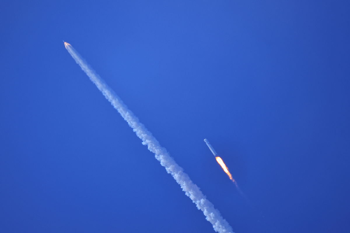 During the descent, some of its engines were restarted twice to work in coordination with the grid fins and the reaction control system to reduce its speed and maintain the desired positions.