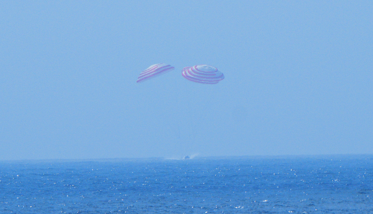 In the final seconds of the sophisticated maneuver, all engines stopped operating, allowing the gigantic vehicle to splash down smoothly in a designated sea area, marking the successful completion of the test.