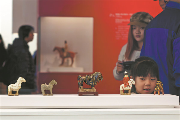 Among the exhibits, the Figurine of a Drum-playing Horseman from the Tang Dynasty marks recent archaeological finds in China. A loaned piece from the Gansu Institute of Cultural Relics and Archaeology, it was unearthed from a tomb of the Tuyuhun people in a village of Gansu province in 2019.