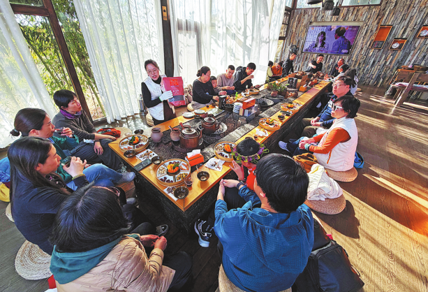 Tourists savor tea at a teahouse in Tengchong, Yunnan province, on Jan 30. DU LIANYI/CHINA DAILY