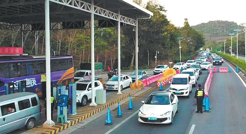 At dawn, traffic flows steadily along an expressway cutting through the tropical rainforest of Southwest China. Trucks, tourist buses and private cars pass in quick succession.