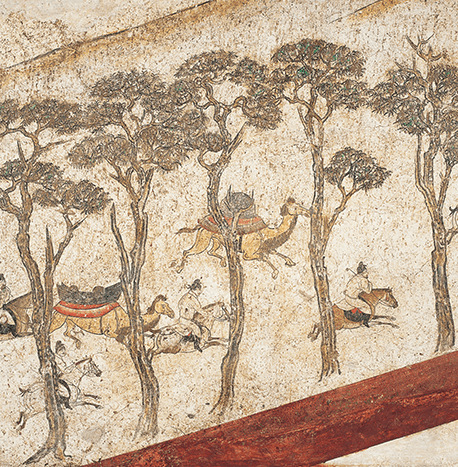 Tomb mural depicts a hunting procession during High Tang period