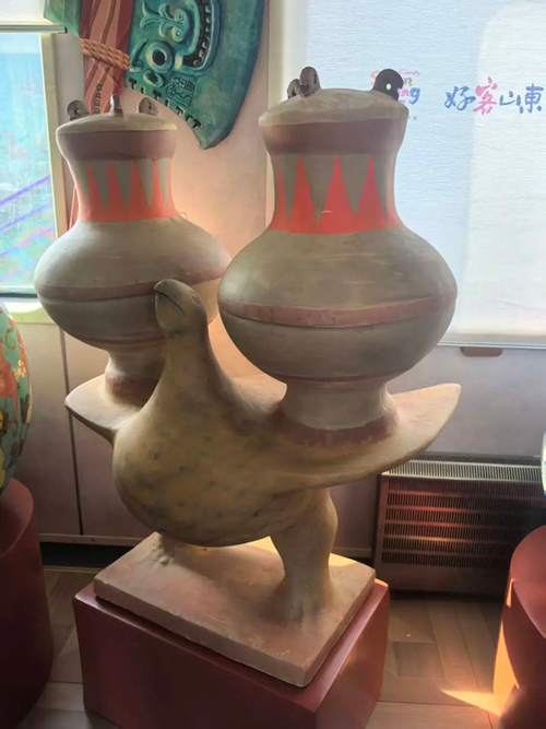 The famous painted pottery dove from the Jinan Museum is within the train's themed carriages. [Photo/WeChat account: jnslyj]
