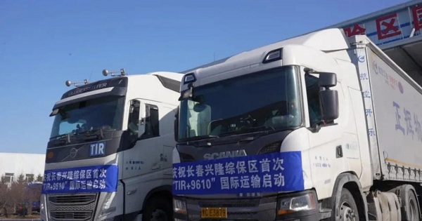Two trucks bearing TIR (Transport International Routier) signage departed from Changchun Xinglong Comprehensive Bonded Zone on Feb 26 after completing all customs procedures. Traveling north via Manzhouli Port, the vehicles are directly bound for Moscow, marking the launch of Jilin province's first TIR+9610 export business.