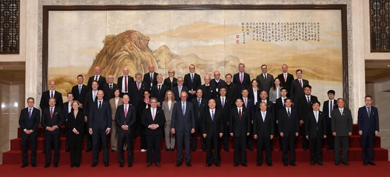 A group photo taken by West Lake on Feb 26 showed German Chancellor Friedrich Merz alongside nearly 30 senior German business executives, Zhejiang provincial leaders and Chinese entrepreneurs, underscoring the growing economic relationship between China and Germany.