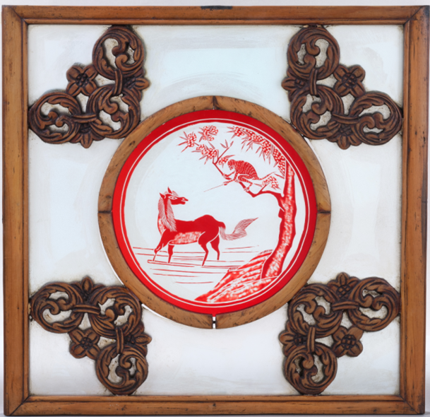 Glass window decorated with interlocking flower and monkey-above-horse motifs, after 1840 [Photo/Guangzhou Museum official WeChat account]