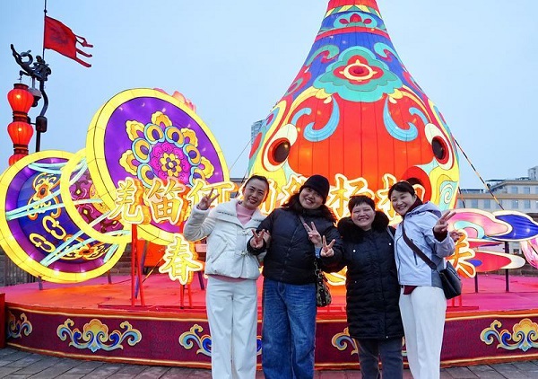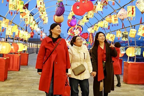 At night, they ascended the wall to visit the Spring Festival lantern show, wandering amid interlacing lights and shadows.