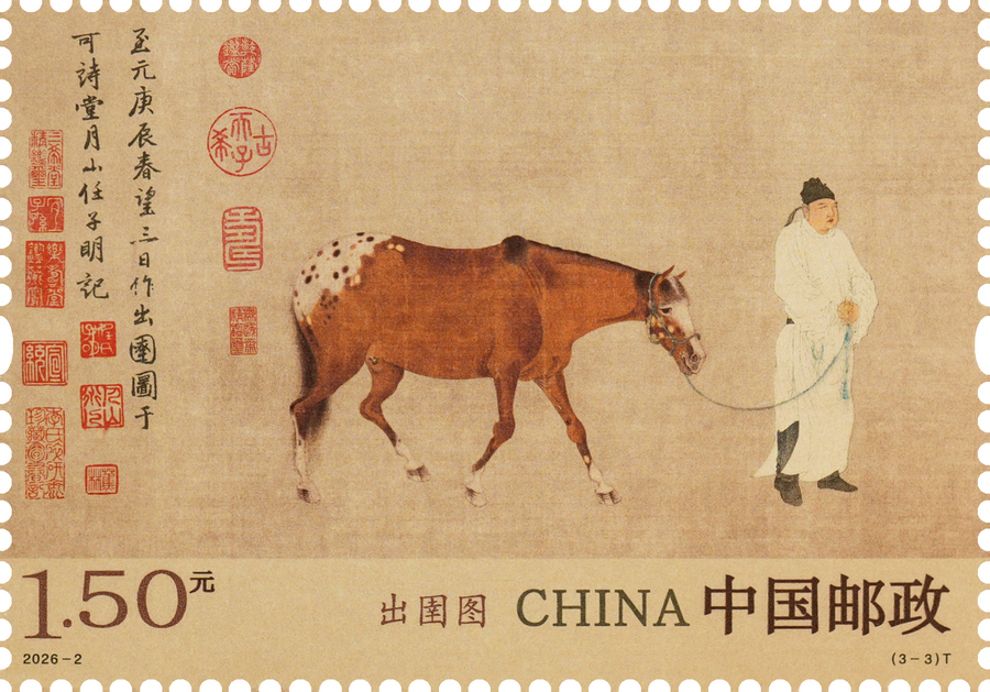 To celebrate the Year of the Horse, China Post released a set of three postage stamps featuring Chu Yu Tu, a celebrated work by Yuan Dynasty (1271-1368) artist and engineer Ren Renfa, which is housed at the Palace Museum in Beijing. [Photo provided to chinadaily.com.cn]