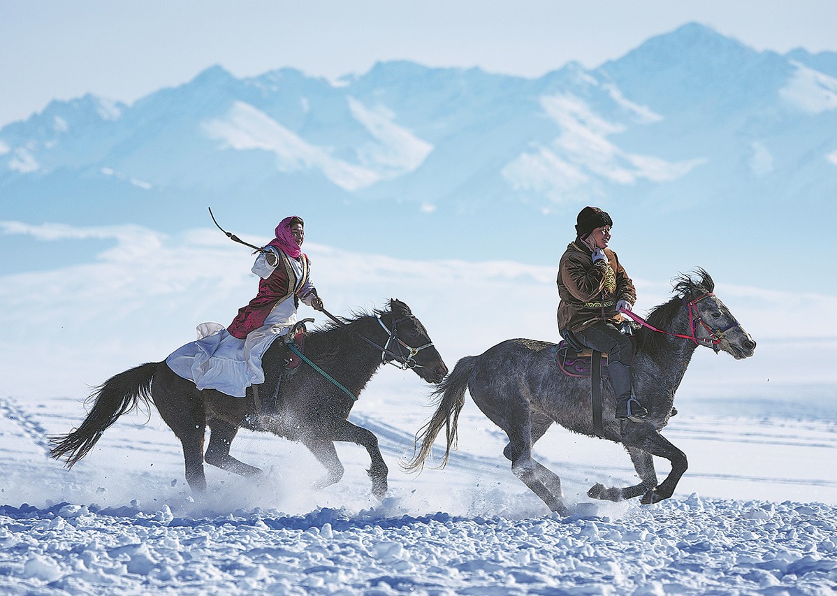 URUMQI — Snow settles at the foot of the western Tianshan Mountains until a herder lifts his whip and the silence gives way to motion: a line of horses surges forward, hooves striking powder into white mist. In Zhaosu, a remote county in the Ili River Valley in China's far northwestern Xinjiang Uygur autonomous region, winter brings a spectacle locals call "heavenly horses treading snow" — an image that looks ancient, but the economics behind it are not.
