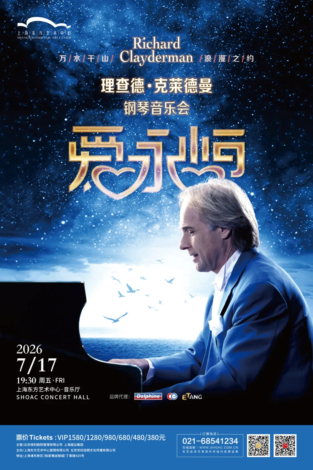 The “Prince of Piano”, Richard Clayderman, will bring his signature romantic melodies to the stage once again. On July 17, join an evening of beloved classics spanning over four decades at the Shanghai Oriental Art Center. It will be a night of music, memories and pure emotion.