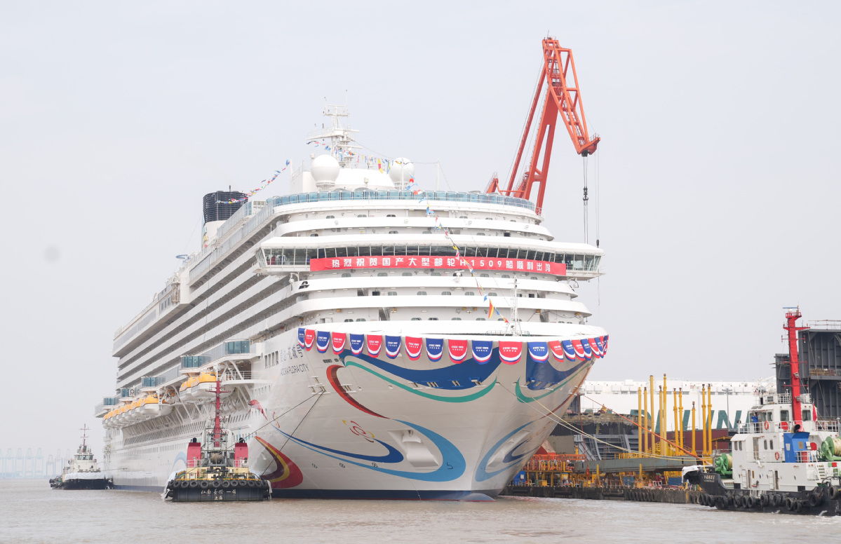 This photo taken on March 20, 2026 shows China's second domestically built large cruise ship, Adora Flora City, in Shanghai, East China. [Photo/Xinhua]