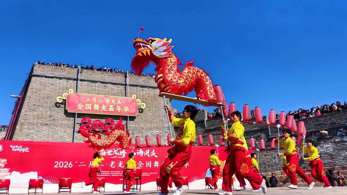 The 2026 National Dragon Dance Carnival opened on Friday at Laolongtou — or Old Dragon's Head — at Shanhaiguan Pass in Qinhuangdao, North China's Hebei province, and will run through Sunday. The event celebrates the traditional Longtaitou Festival.