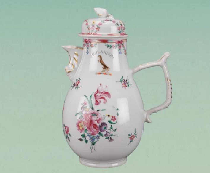 Cantonese enamel lidded coffee pot with heraldic and floral motifs, Qing Dynasty, from the collection of the Guangdong Museum [Photo/Guangdong Museum official WeChat account]