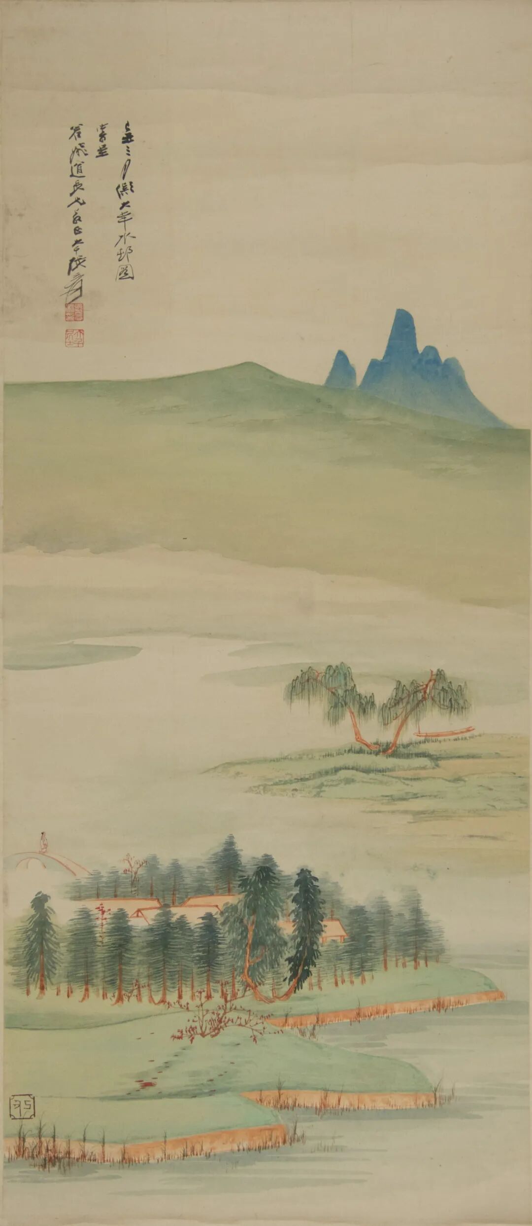 Landscape with Trees and Water, in the style of Song Dynasty (960-1279) artist Zhao Danian, Zhang Daqian (1899-1983) [Photo/Nanjing Museum official WeChat account]
