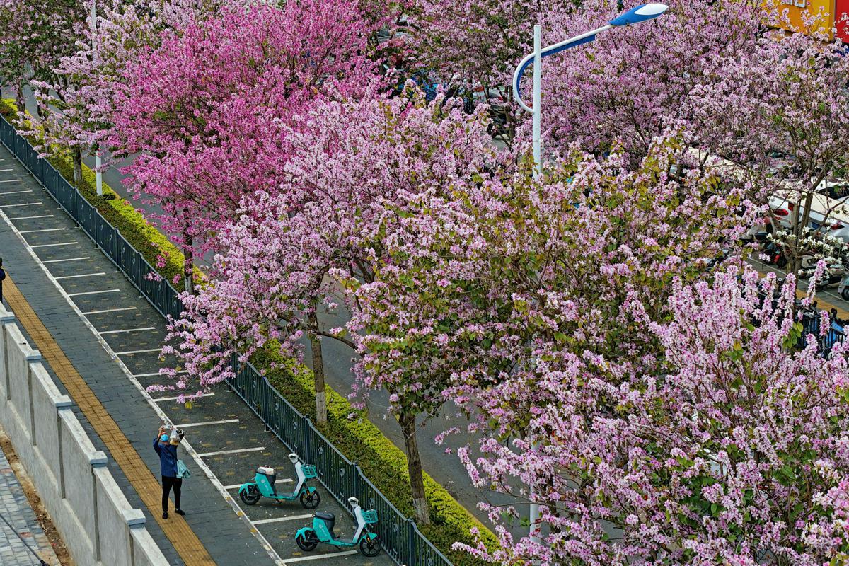 Bauhinia variegata recently bursts into full bloom across Xiamen, Fujian province, in white and pink. [Photo by Chen Bo/For chinadaily.com.cn]