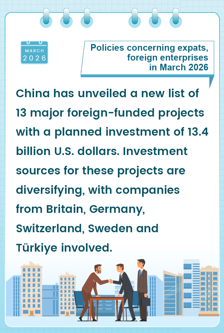 Policies concerning expats, foreign enterprises in March 2026