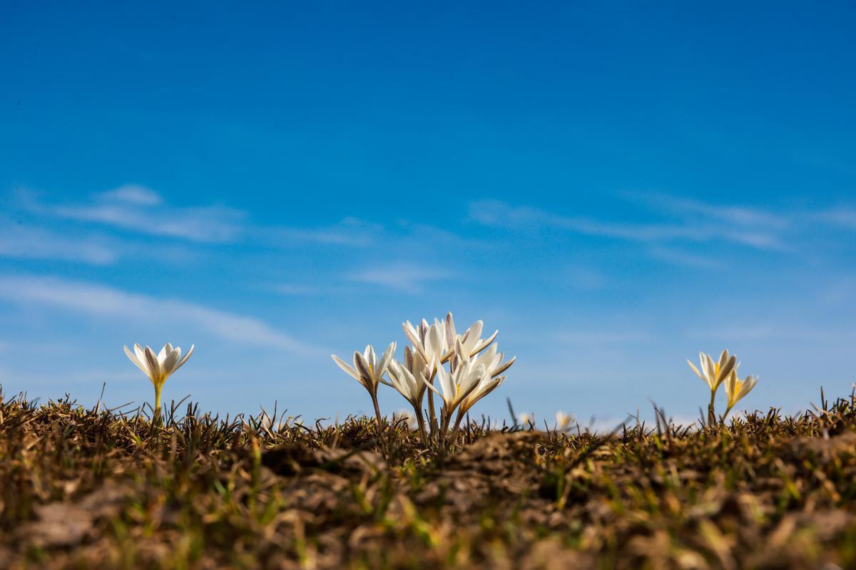 White crocuses bloom at the 2,000-meter-high meadows of the Narat grassland in Xinyuan county of Ili Kazak autonomous prefecture, Xinjiang Uygur autonomous region. [Photo by Zhang Wenting/For chinadaily.com.cn]
