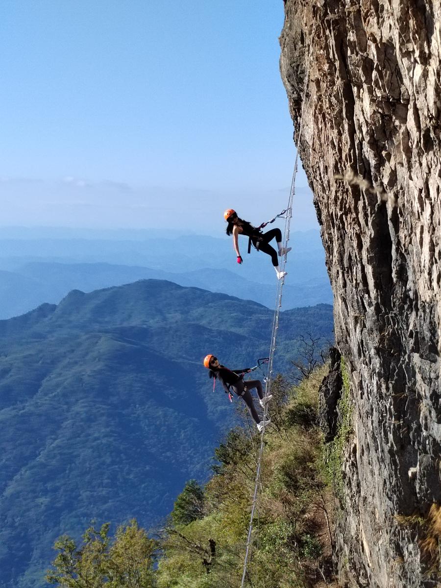 A 168-meter via ferrata route on the sheer cliffs in Zhangjiajie, Hunan province, draws thrill-seekers from around the world. [Photo provided to chinadaily.com.cn]