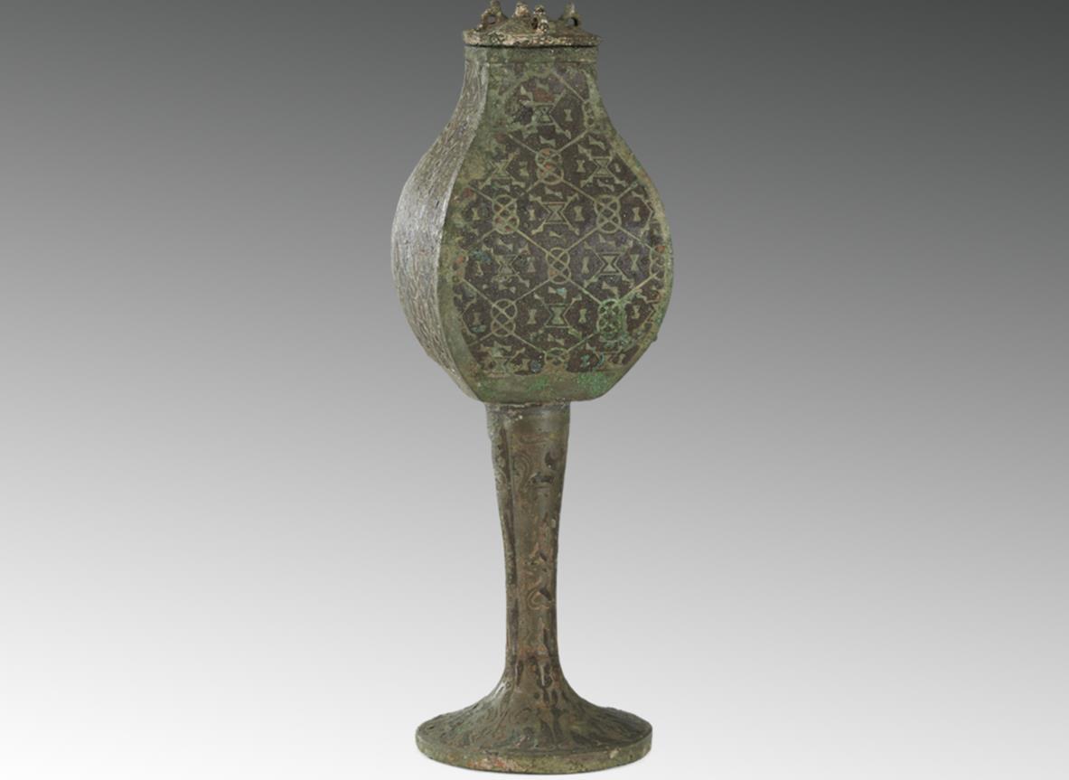 Ever seen a bronze "goblet" from over 2,000 years ago? Meet this bronze hu (wine container) from the Spring and Autumn Period (770-476 BC), unearthed from the Zhao noble's tomb in the Jin vassal state. With its sloping shoulders, rounded belly, small square mouth, and flared tall stem, the vessel presents a graceful silhouette.