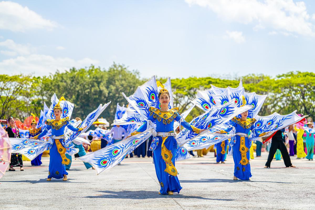 Dai dancers perform the peacock dance at the 2026 Water-Splashing Festival on April 11 in Ruili, Dehong Dai and Jingpo autonomous prefecture, Yunnan province. [Photo by Xu Jun/for chinadaily.com.cn]