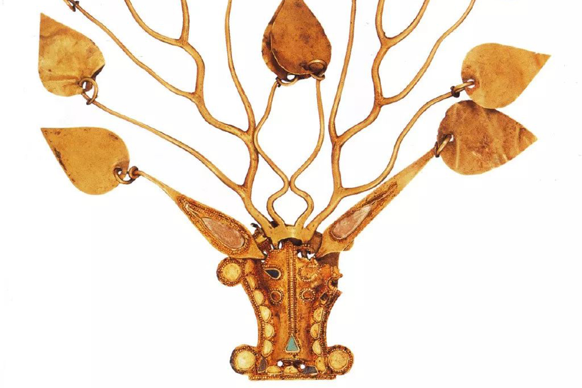 Centuries-old woven fabric with chicken, sheep and lamp patterns